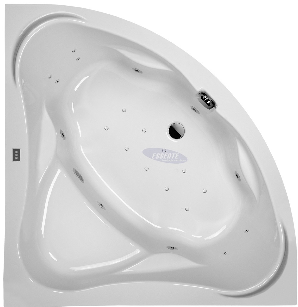 Symetryczna narożna wanna z hydromasażem z serii ExclusiveLine. Najwyższa polska jakość, nowoczesnegy design oraz trwałe podzespoły do hydromasażu to główne zalety wanny.